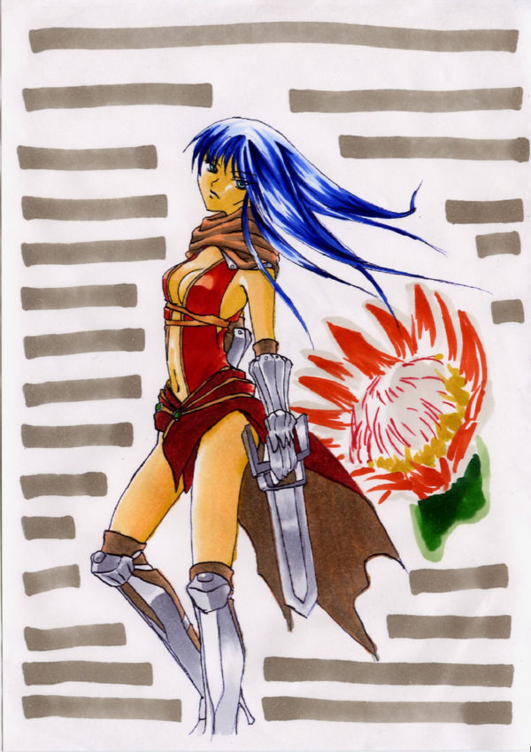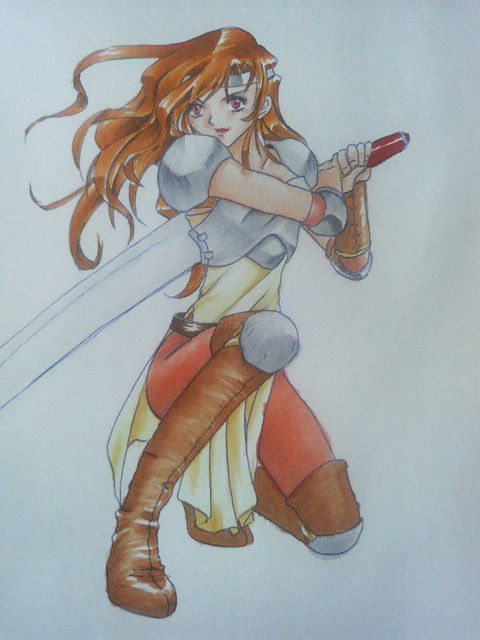 絵にしたときにね、髪の色と鎧の色が近すぎて、ぱっとしなかったの。