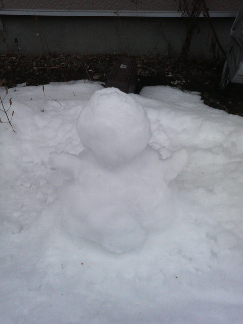 べべ様のためにこさえた雪だるまをオワタにしちゃう旦那のセンスは……。