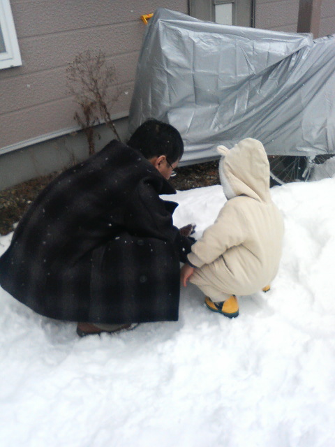 雪が少なかったので、小さなものしか作れなかったけど、べべ様は大喜び。